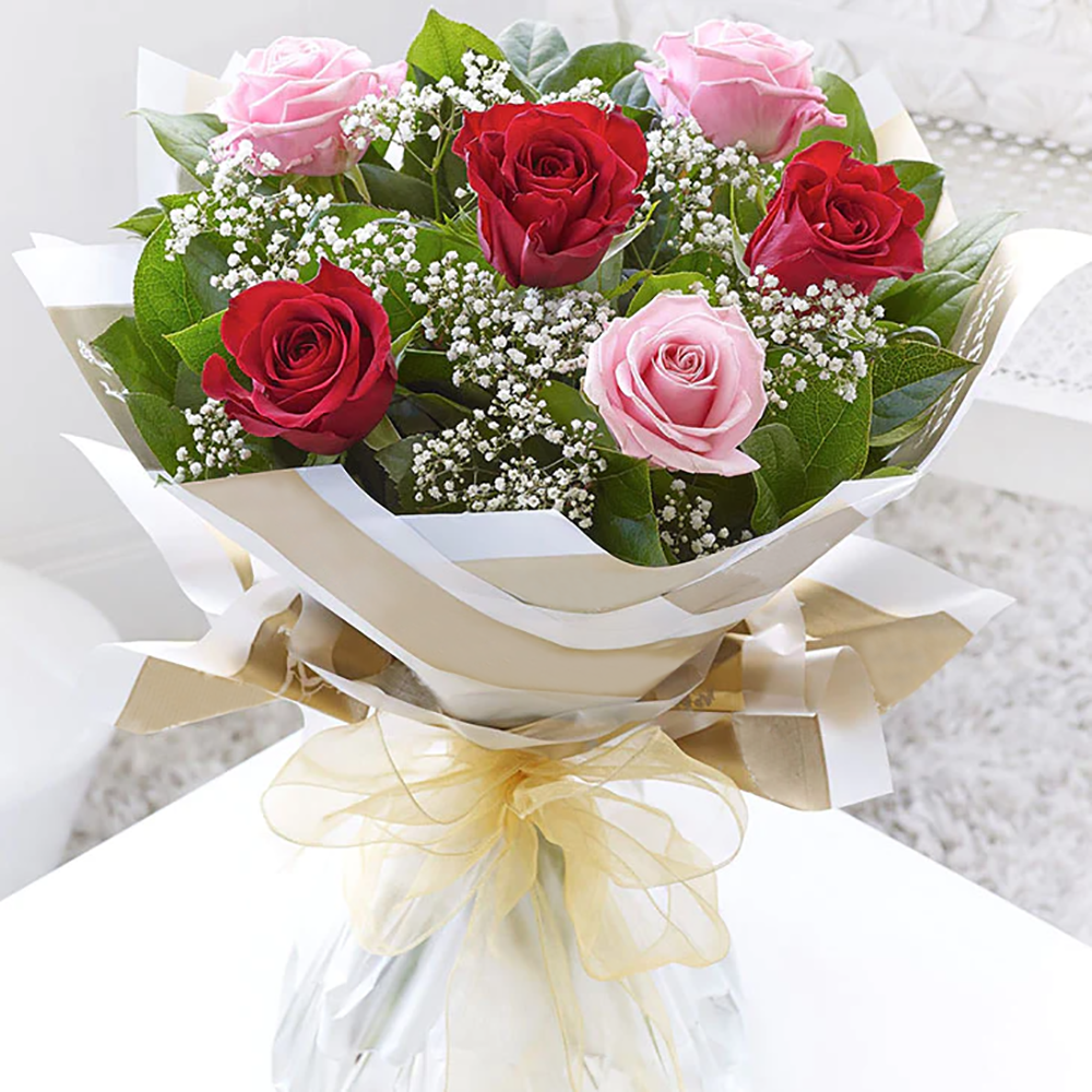 Looking for a gift that can express your true love and adoration? Well, look no further. The 6 Pink and Red Roses Bouquet is the best way to express your gratitude and adoration. The bouquet is a masterpiece on its own, created to express the most profound sentiments of love and adoration. With elegantly arranged vibrant red and pink roses, it is sure to bring a smile to your mother's face.